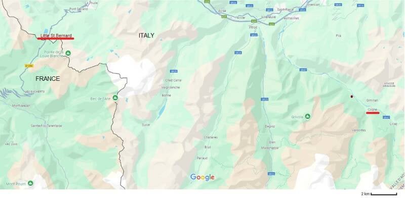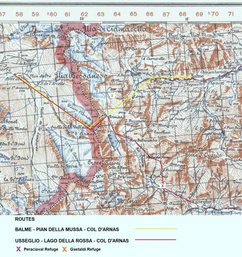There were two major crossing points - the Col d'Arnas and the Colle Galisia, and several minor ones